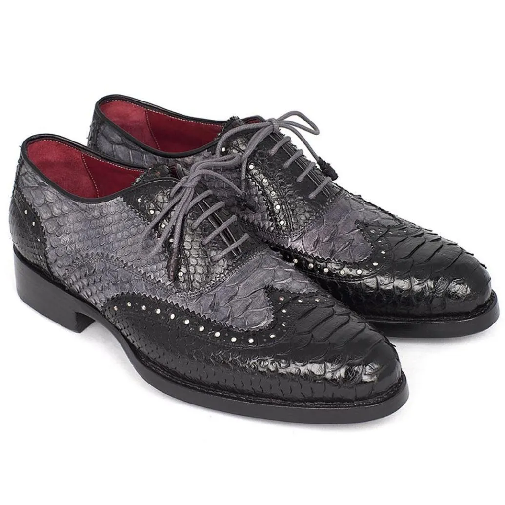 Goodyear Welted Camel Genuine Python & Calfskin Wingtip Oxfords