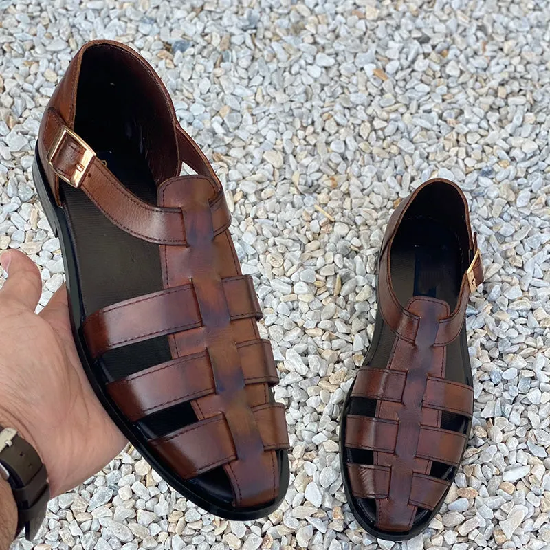 PURE LEATHER HANDMADE OLIVER SANDAL BROWN-(Buy 2 Free Shipping✔️)